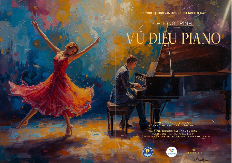 Âm nhạc không chỉ là những nốt nhạc khô khan trên trang giấy, mà là một thực thể sống động, có khả năng kết nối tâm hồn và đánh thức những xúc cảm ngủ quên. Vào ngày 12/12/2025 vừa qua tại Hội trường Lầu 9 (Đại lộ Nguyễn Văn Linh, khu đô thị Nam Thành Phố, TPHCM), Khoa Nghệ thuật Trường Đại học Văn Hiến đã một lần nữa khẳng định triết lý đó thông qua chương trình nghệ thuật thường niên mang tên “Vũ Điệu Piano”. Đây không đơn thuần là một buổi diễn báo cáo, mà là một hành trình văn hóa đa sắc, nơi cây đàn Piano rũ bỏ vẻ ngoài tĩnh lặng để hòa mình vào những vũ điệu rực cháy.