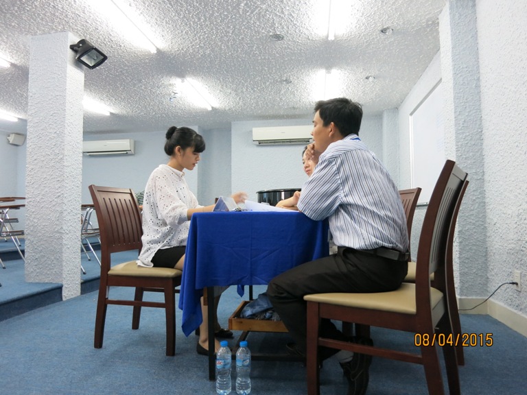 Sau giờ thi ký âm, thí sinh bắt đầu giờ thi xướng âm. Hầu hết các thí sinh đều tự tin và thực hiện được bài xướng âm trôi chảy.